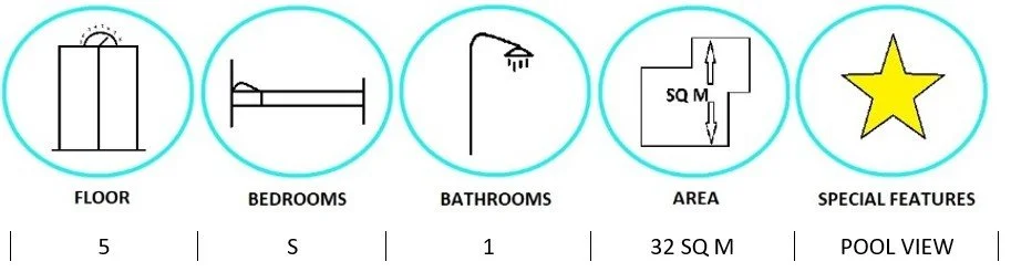 STUDIO · 1 BATH · 32 SQ M · 1 BALCONY · POOL VIEW