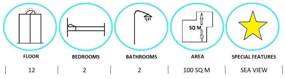 HIGH FLOOR · 2 BED · 2 BATH · 100 SQ M · 2 BALCONIES · SEA VIEWS