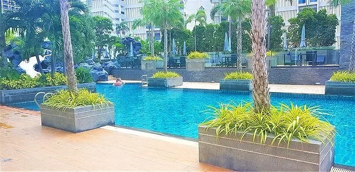 One of the standout features of The Cliff Pattaya is its large and beautifully designed communal swimming pool. The pool area is divided into both leisure and lap swimming zones and includes a separate children’s pool, along with attractive water features such as waterfalls, fountains, and a relaxing Jacuzzi area. The pool is surrounded by tropical landscaped gardens and sunbathing terraces, creating a resort-style atmosphere that residents can enjoy throughout the year.