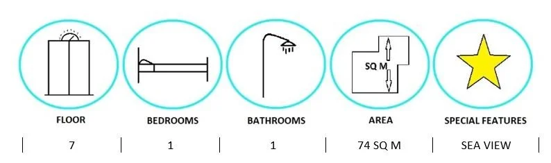1 BED · 1 BATH · 74 SQ M · 2 BALCONIES · SEA VIEW