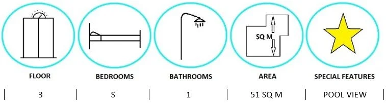 STUDIO · 1 BATH · 51 SQ M · 1 BALCONY · POOL VIEW